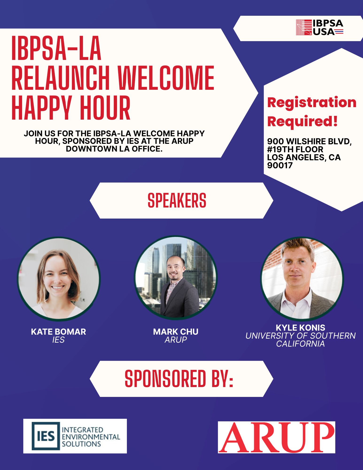 You’re Invited to the IBPSA-LA Re-Launch! Join us for the IBPSA-LA Welcome Happy Hour, sponsored by IES at the Arup downtown LA office.